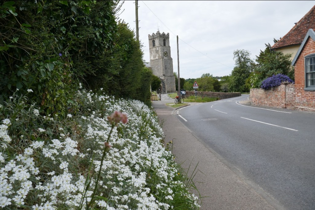 I totally fell off the wagon last week with a tour of local hostelries – admittedly locked down. So this week’s stage in Le Tour de Coddenham attempts to put me firmly back on board with a truly teatotal temple tour of local places of worship – equally locked down. And you will be pleased to hear that, as the Peleton again chose to do her Pilates, there was no risk of violating social distancing rules with a bunch sprint and photo finish at the end. (Although I couldn’t resist stopping to take photos of flowers & things…)